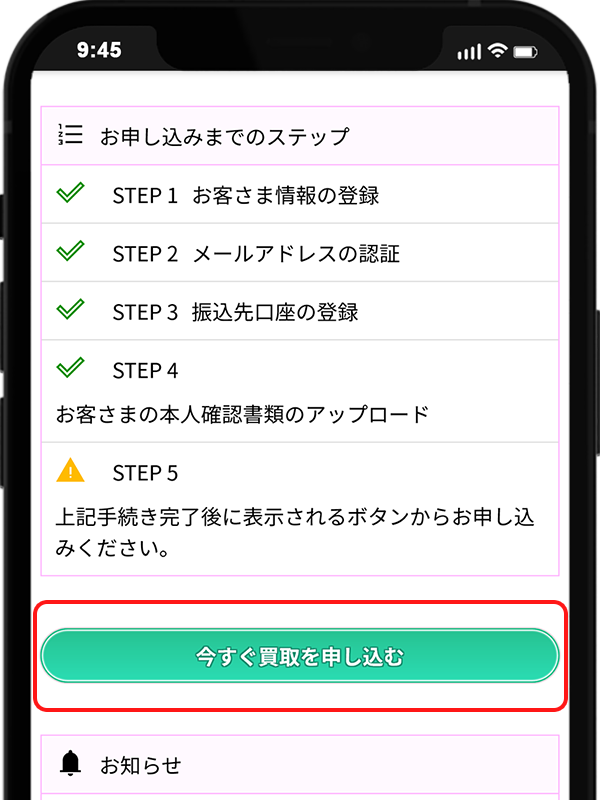 - 再度ご利用の際には「Step2」からの手順になるため、スピーディーに買取サービスをご利用いただけます。