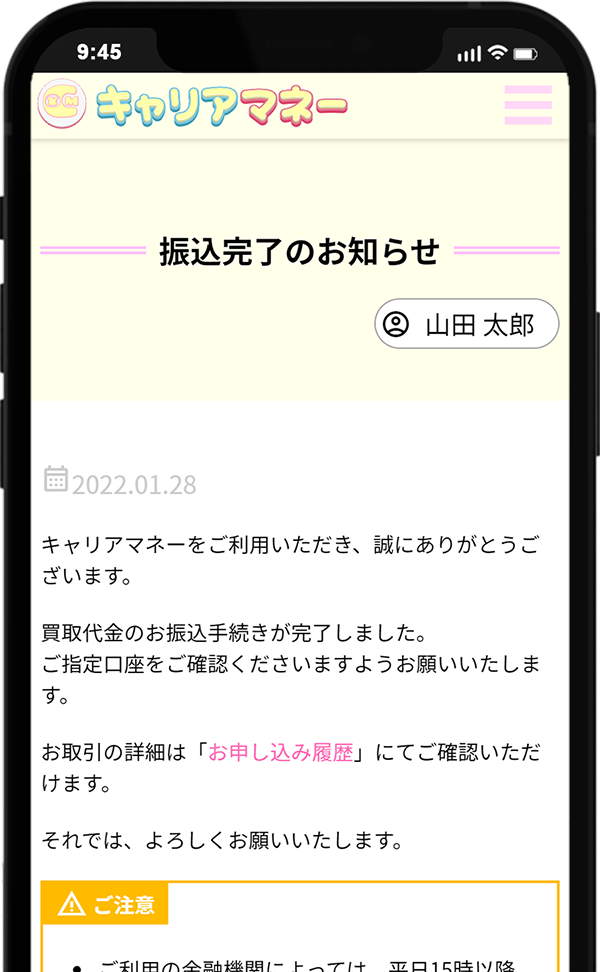 お客さまがご利用されている金融機関によって、買取代金の振込対応時間が異なります。